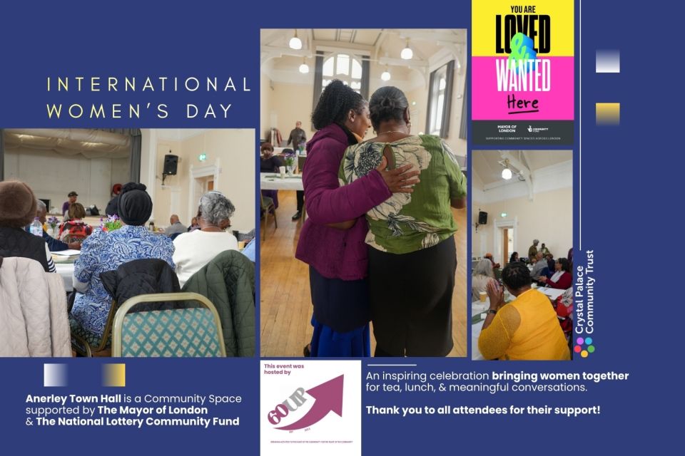 Anerley Town Hall welcomed a special International Women’s Day gathering hosted by 60UP C.I.C, bringing together a group of wonderful women for tea, lunch, conversation and shared stories.
